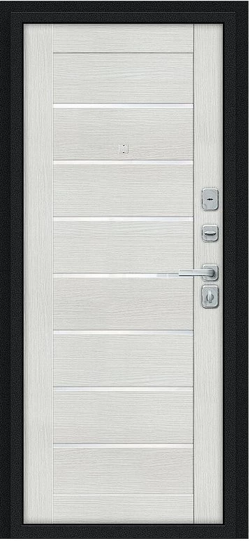 Дверь Браво Техно/BChrome Букле черное/Bianco Melinga среднего ценового диапазона. Стоит дверь 28 600 руб. и это отличное соотношение цены и качества. Модель подойдет для установки, например в новостройку. Прослужит долго и будет надежной защитой вашей квартиры или дома.