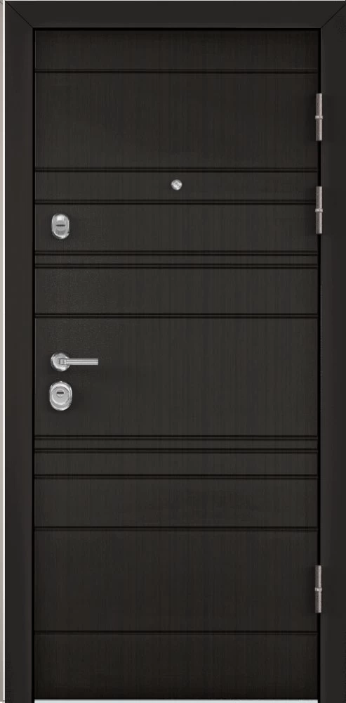 Надежная входная Дверь Цербер 3К(Чёрная) Горизонт Венге(Сменная панель) премиум класса по цене 38 000 руб. Большая толщина стали защитит от проникновения в ваш дом, квартиру или коттедж. Используется очень качественная фурнитура: замки, цилиндры, ручки, защелки. Покрытие и отделка двери изготовлено под внимательным контролем производителя. Дверь имеет долгий срок службы и гарантию.